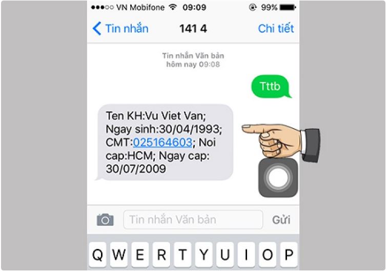 – Cách 2: Bạn có thể tra cứu qua tin nhắn. Chỉ cần soạn tin TTTB gửi 1414 (gửi tin nhắn miễn phí) hoặc nhập cú pháp TRACUOC gửi 195. Phương pháp này có thể rà soát được số điện thoại Viettel đang sử dụng cũng như những thông tin khác như họ tên chủ thuê bao, CMND, hộ chiếu, ngày sinh.