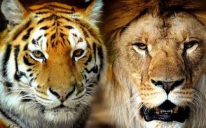 Hổ và sư tử là 2 loại thú ăn thịt to lớn với sức mạnh...