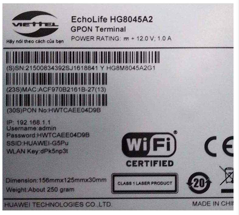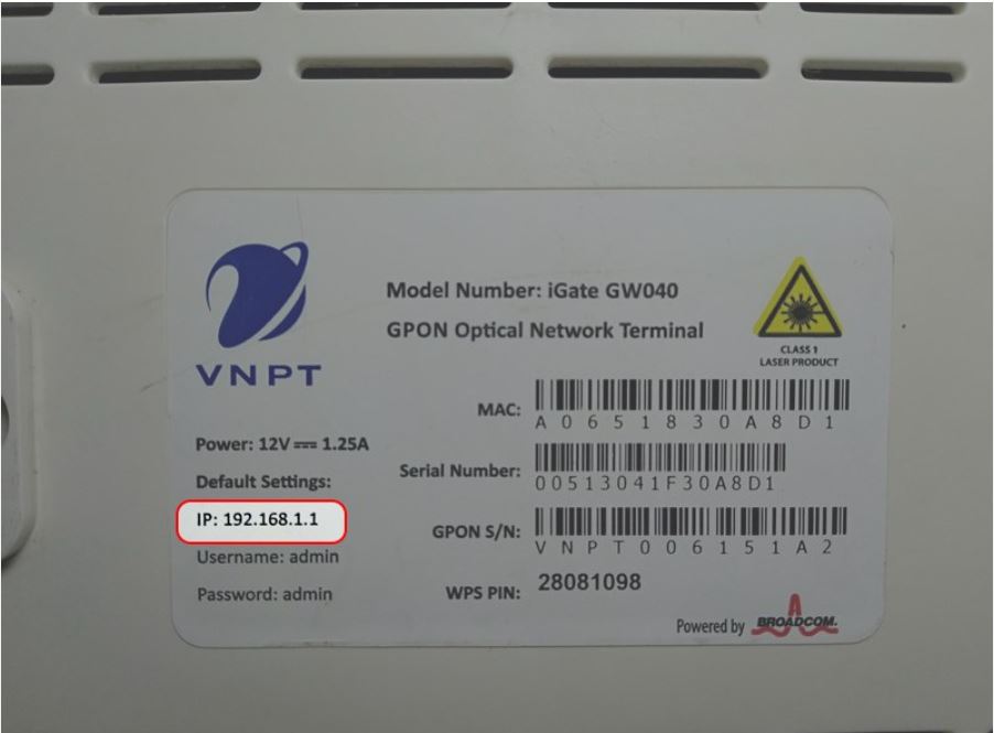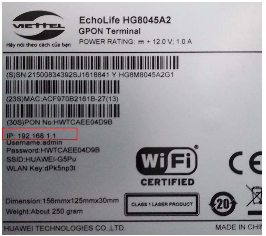 Đôi khi địa chỉ 192.168.1.1 sẽ bị thay đổi tùy theo thiết bị, để chắc chắn hơn bạn có thể tìm chúng ngay bên dưới modem Viettel.