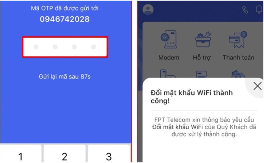 Bước 5: Nhập mã OTP để hoàn tất quá trình đổi mật khẩu.