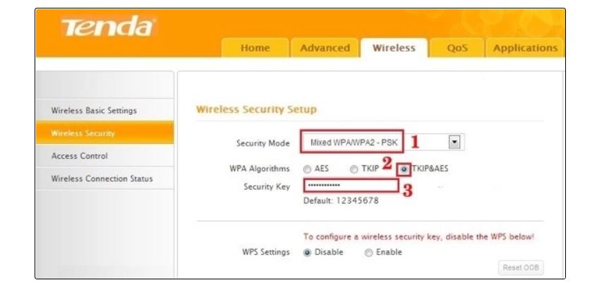 • Sau đó chọn tab Wireless > Wireless Securityrồi nhập mật khẩu cho WiFi vào mục Security Key rồi nhấn OK là xong.