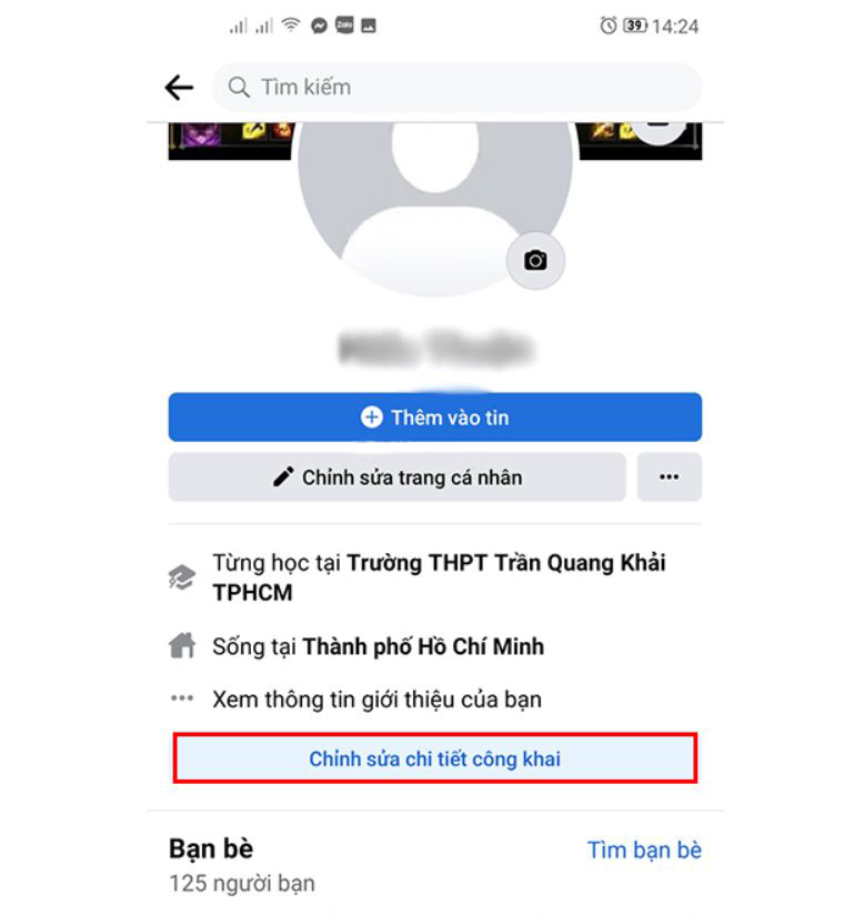 Bước 1: Mở ứng dụng Fb và truy cập vào trang cá nhân của bạn. Nhấn vào nút Chỉnh sửa chi tiết công khai.