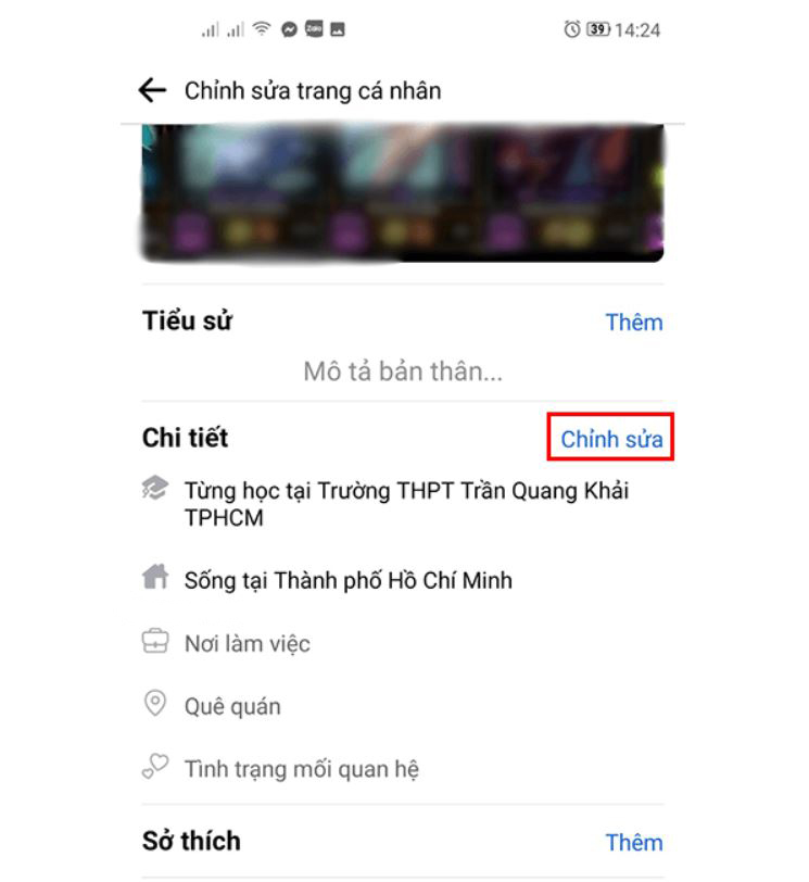 Bước 2: Tại mục Chi tiết, bạn hãy nhấn vào nút Chỉnh sửa nằm ngay bên cạnh..