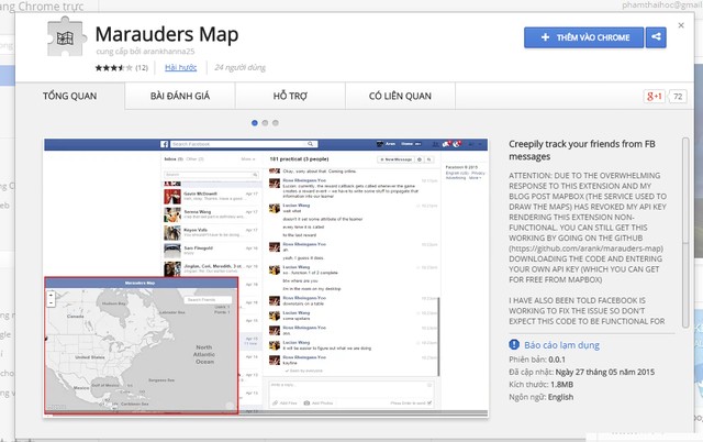 Xem vị trí bạn bè trên facebook qua bản đồ là một tiện ích mở rộng dành cho trình duyệt Chrome có tên là Marauders Map. Tên của nó được dịch ra là là “bản đồ đạo tặc”.