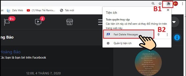 Bước 4: Bấm chọn biểu tượng tiện ích có hình mảnh ghép và chọn Facebook Fast Delete Messages.