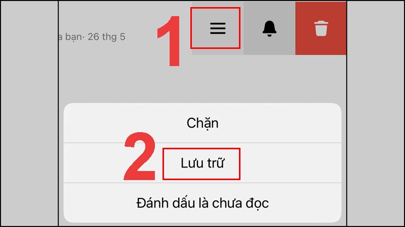Bước 4: Nếu không muốn Xóa vĩnh viễn bạn có thể lưu trữ lại tin nhắn và ẩn nó đi bằng cách: Nhấn biểu tượng 3 gạch ngang > Chọn Lưu trữ.