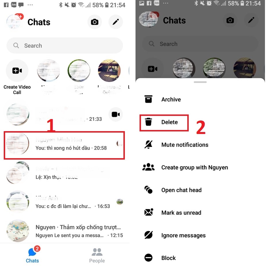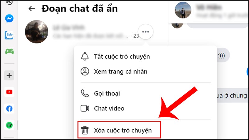 Nếu bạn muốn xóa hãy nhấn Xóa cuộc trò chuyện.