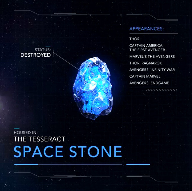 Đây là viên đá xuất hiện sớm nhất trên màn ảnh, từ phim Captain America: The First Avenger (2011). Khi được đựng trong một khối lập phương màu xanh, nó mang tên Tesseract. Nó có thể mở các cánh cổng để di chuyển xuyên không gian. Khối Tesseract cũng chứa nguồn năng lượng lớn, đủ để cấp cho hàng loạt vũ khí có sức hủy diệt.