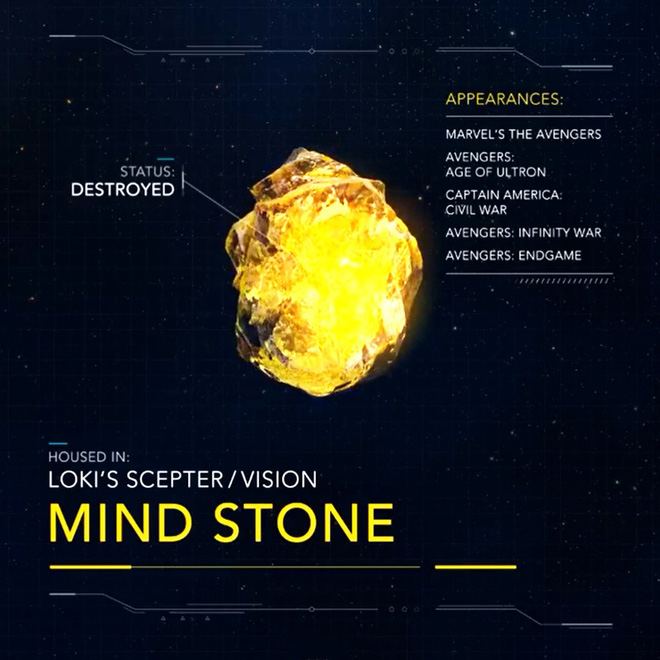 Năm 2014: HYDRA đã cướp cây quyền trượng và giết Cooper. Năm 2015: Tony Stark tạo ra Ultron, sau đó Vision ra đời mang trên trán viên đá Trí tuệ. Năm 2018: Vision bị Thanos cướp lại viên đá Tâm trí và thực hiện cú búng tay Vô Cực.