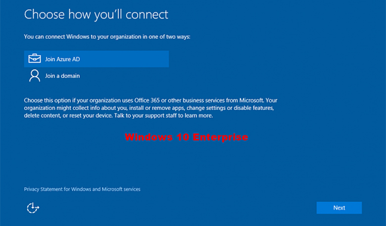 + Join Azure AD: Click nếu sử dụng Office 365 hoặc các service business từ Microsoft.