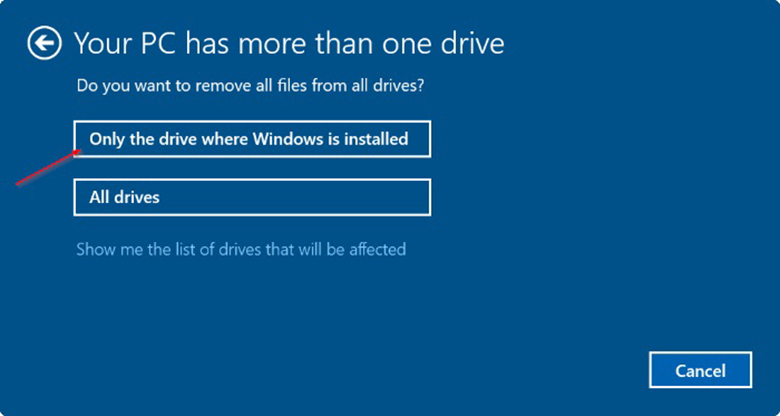 - Only the drive where Windows is installed: Chỉ ổ chứa bộ cài Windows bị xóa