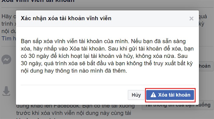 – Khi khóa tài khoản vĩnh viễn bạn sẽ không thể mở lại Facebook sau 30 ngày kể từ ngày xóa.