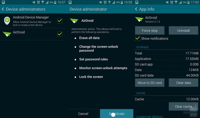 Thậm chí một số ứng dụng còn yêu cầu bạn cho phép truy cập vào quyền quản trị (Administrator) trên điện thoại nhằm một vài mục đích như: Khóa/Mở khóa điện thoại, thiết lập mật khẩu, gửi thông báo, theo dõi vị trí điện thoại,…. Một vài ứng dụng điển hình cần truy cập quyền Admin như: Android Device Manager, AirDroid, Gravity Screen…